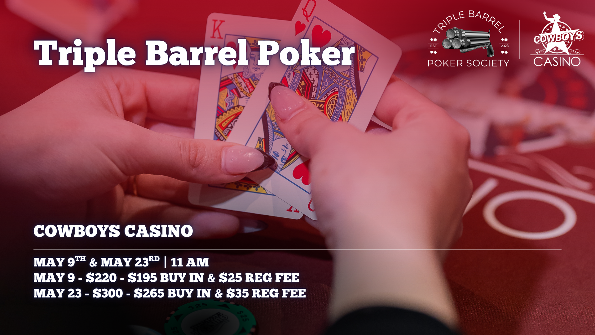 Secure your spot or host your own poker experience at Cowboys Casino. Whether you're planning a casual night out or organizing a private tournament, our team makes it easy to get in the game.